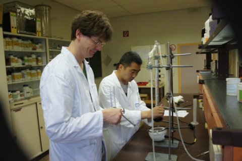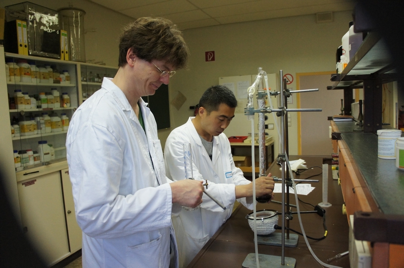 另两个都是滴定实验,目的主要是学习测定物质浓度。其实这两个实验的教学方法、流程与我们学校的很相似,只是他们上课学生共7个人,这样老师可以随时关注到每一位学生,及时发现安全问题,及时纠正学生操作中出现的问题。在这次的学习中,他们发现了一些常见滴定仪器非常之处:如分析实验中的滴定管,德国所使用的是在滴定管下方,尖嘴上方是向前弯大约120度,活塞是垂直向下的,他们所使用的洗耳球带三阀:A排气阀;S填充阀;E输液阀,便于操作控制。量取浓硫酸的量器更是安全又方便。