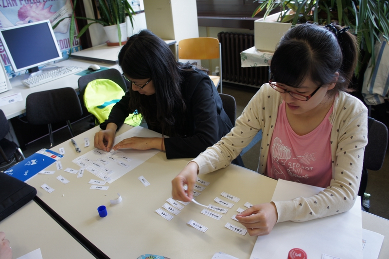 在丽莎学校,一位老师还为我们展示了一堂别开生面的互动课程――以学生为中心的自主学习、自我管理型学习过程。在课堂上,为了检测我们是否懂得老师讲授的内容,同时也为了提高我们的概括能力和表达能力,老师让我们做了一个有趣的实验:一半人手里持有一张卡片,另外一半人则没有。假设我们现在全部在底楼乘电梯到20楼,需要两分钟到达顶楼。在这期间,持卡片的人要找到一个没有卡片的人告诉他什么叫自主性学习。两分钟后再交换同伴。在游戏中,我们可以发表自己的想法,同时也需要聆听别人的问题,在这个过程中不仅完善课堂中学到的知识,也锻炼了表述能力。
