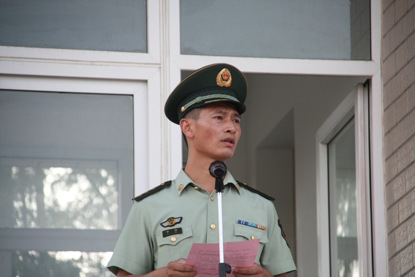 在雄壮的国歌声中,鲜艳的五星红旗冉冉升起,军训入营仪式也正式拉开了帷幕。首先,由来自131化工01班的金武婷同学发言,代表131级全体新生表达了将带着梦想与希望认真完成军训任务的决心,全体新生将在军训中服从指挥,严守纪律,刻苦训练,努力学习,争取以优异的成绩向学校汇报。 接下来是131电子班陈文博老师作为教师代表发言,要求同学们全身心投入训练学习,努力成为对社会有用的人才。表示教师们将全力协助教官工作,恪尽职守、严格管理、确保安全,坚信同学们能顺利完成军训任务,并取得优异成绩。