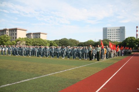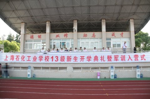2013年8月24日下午3:30,我校在北区田径操场上隆重举行2013级新生军训入营仪式,上海武警部队领导余鑫警官,校长苏勇,党委书记姚松芳,副校长林国新、高炬、黄汉军,工会副主席李丽莲,校办主任周金章,教务处主任栾承伟,学生处主任迮育彪,总务处主任吴永观,化工科科长沈晨阳,经贸科科长贾佩新,基础科科长邵宝勤出席仪式,入营仪式由学生处��老师主持。