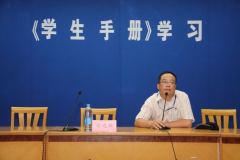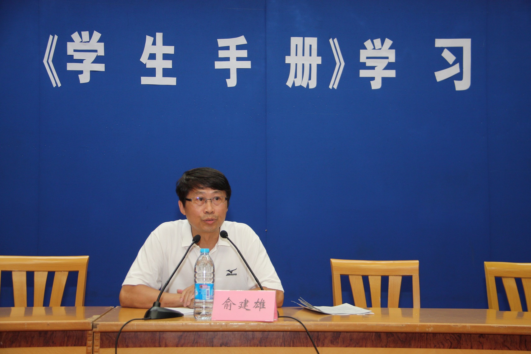 2013年8月25日下午一点半,教务处副主任俞建雄在学校报告厅为大家作了关于《学生手册》学习的讲座,由学生处主任迮育彪主持。