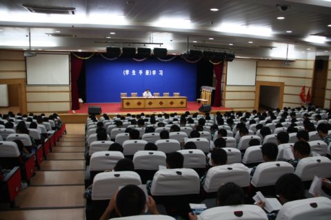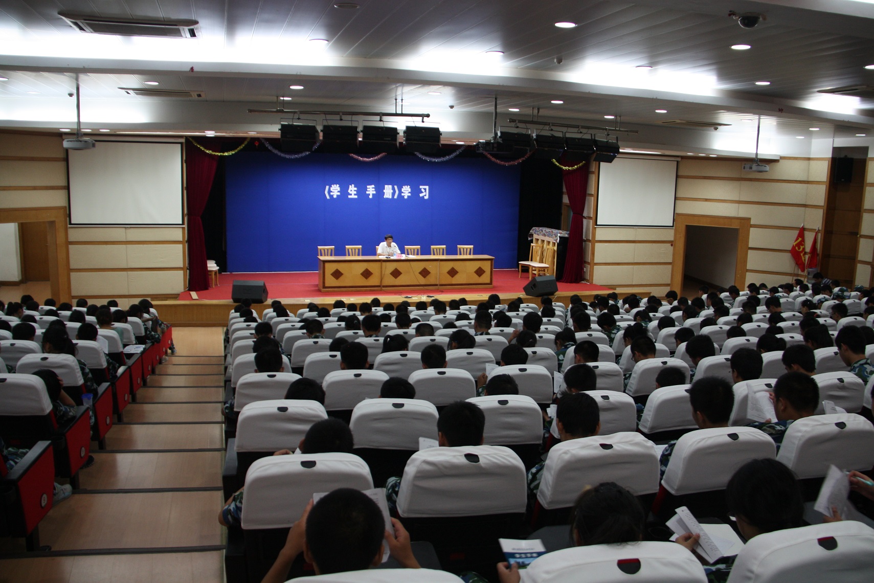 讲座开始前,各班同学身着整齐的军训服由班主任带入报告厅,整个过程有条不紊、井然有序。经过了一天的军训生活,同学们遵守纪律的意识有了明显的提高,大家都端正的入座,精神十足。