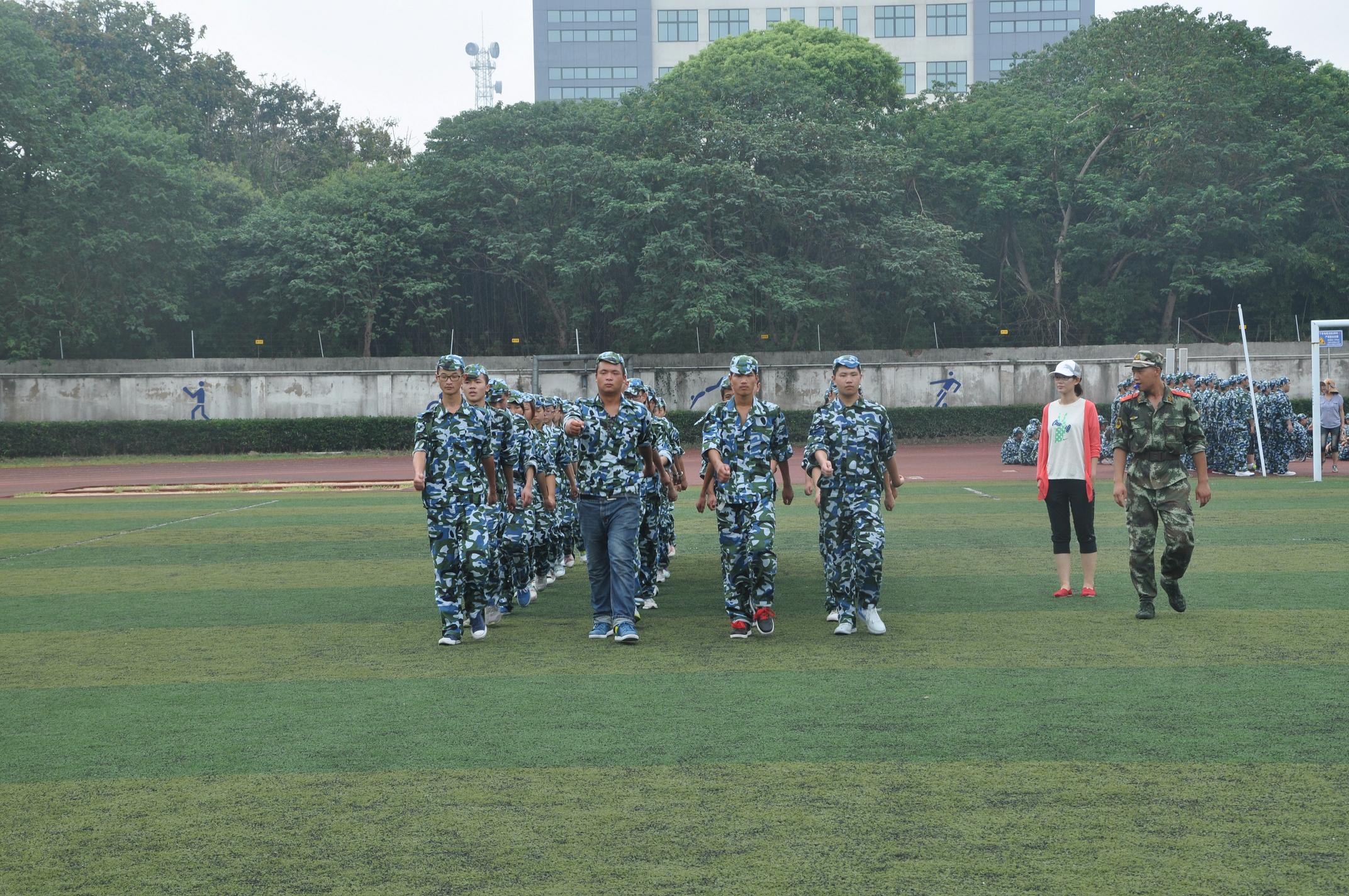 大家现在教室里听完一番“洗脑”教育,接着就分成两队向操场进发!