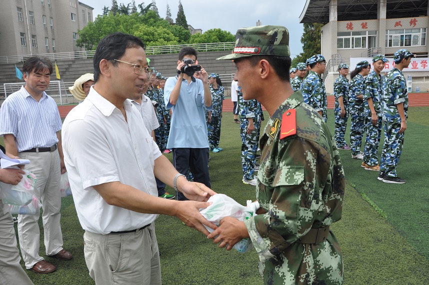 苏勇校长高度肯定了同学们在军训中表现出的吃苦耐劳、不畏高温的良好精神面貌。他鼓励同学们能够上好这一课,在队列操练中感受部队艰苦奋斗、团结紧张、严肃活泼的好传统、好作风,学习部队军人的品德与气质。在接下来的训练中,希望同学们继续发扬吃苦耐劳的精神和科学严谨的作风,通过军训加强组织纪律性,提高身体素质,圆满完成军训任务。