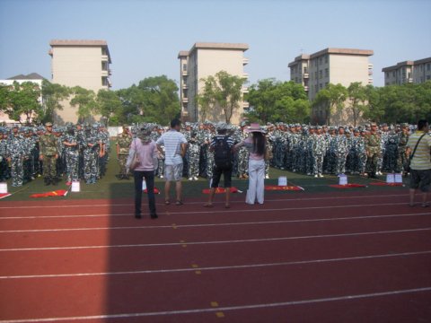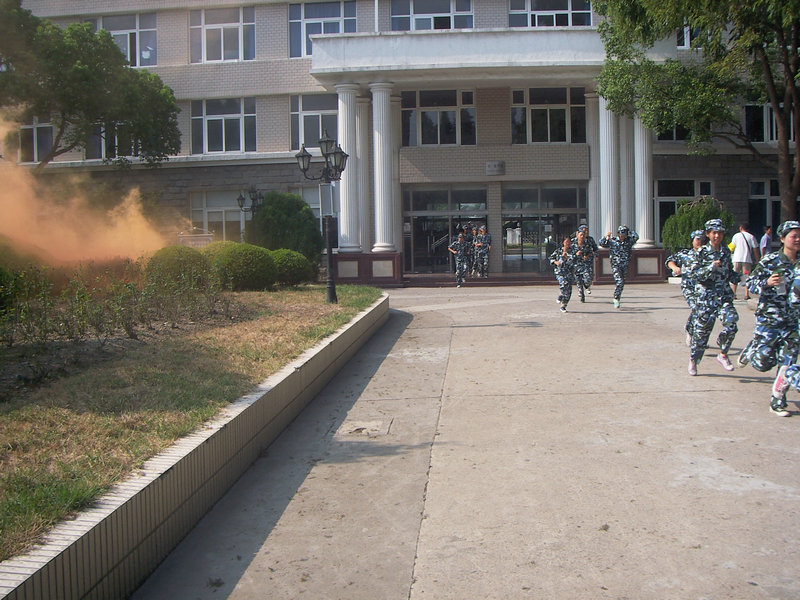 下午15:00, 随着警报声的响起,演习正式开始。同学们听到警报声,迅速站起身,有序排队。在班主任老师的带领下,同学们按照预案中指定的逃生路线迅速撤离,按楼层从高到低的顺序,从教学楼东、西、南三个方向迅速分流后,小跑奔入北区田径操场。所有学生在各班班主任以及各楼层负责老师的安排组织下,以最快速度按指定线路撤离到操场进行集合。4分钟时间,近1300多名师生全部到达操场集结完毕。整个演习过程紧张有序,让学生较好地掌握了逃生、自救的基本方法。