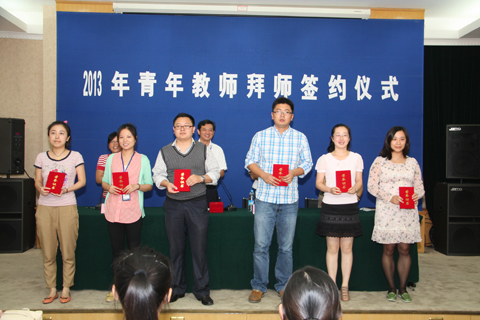 随后,黄汉军副校长宣读了2013-2014学年见习教师和其教学指导教师名单,高炬副校长宣读了新班主任和其指导教师名单,与会校领导向指导教师颁发了聘书。