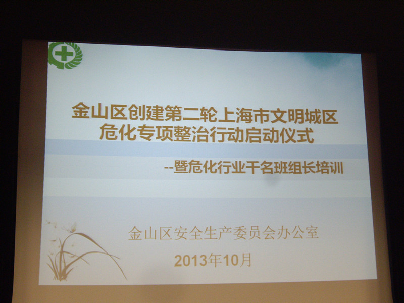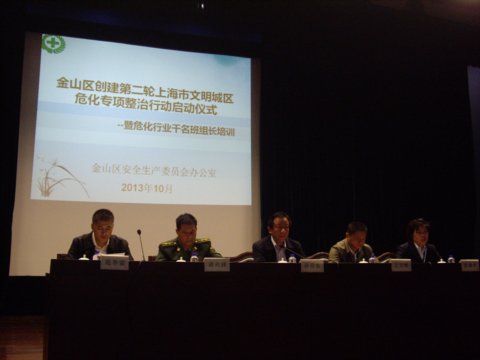 10月31日,区安委办在金山工业区影剧院举行“金山区创建第二轮上海市文明城区危化专项整治行动启动仪式――暨危化行业千人班组长培训”活动。区安监局局长、安委办主任孙引良、区环保局、消防局等部门的主要领导和工业区、亭林镇、张堰镇、廊下镇、漕泾镇的危化行业班组长300多人参加启动仪式。仪式由区安监局副局长崔海平主持。