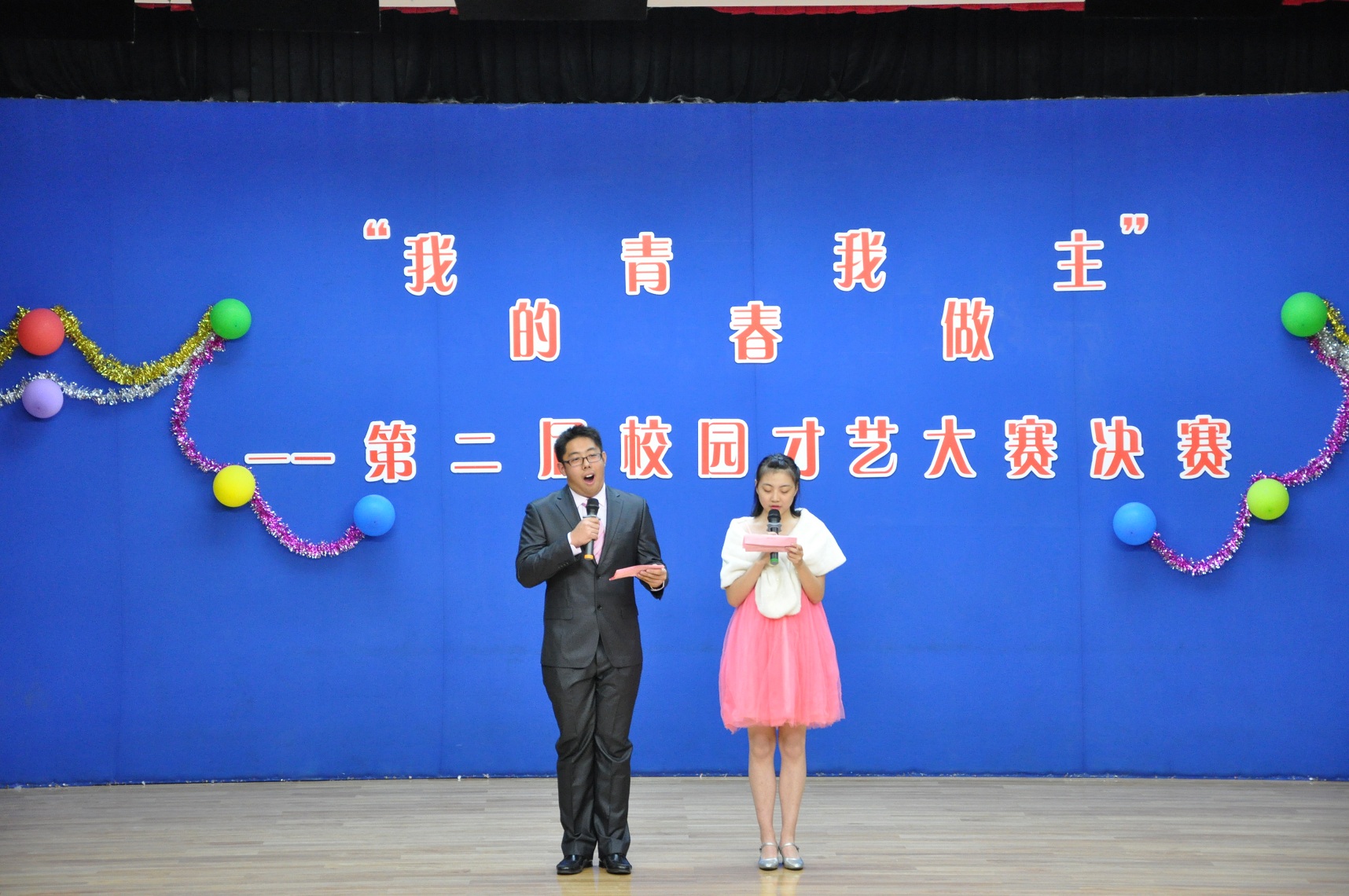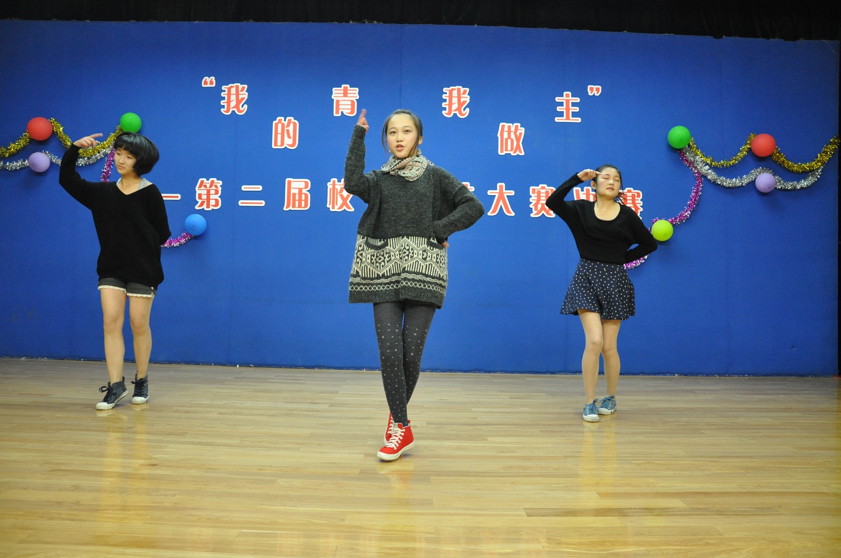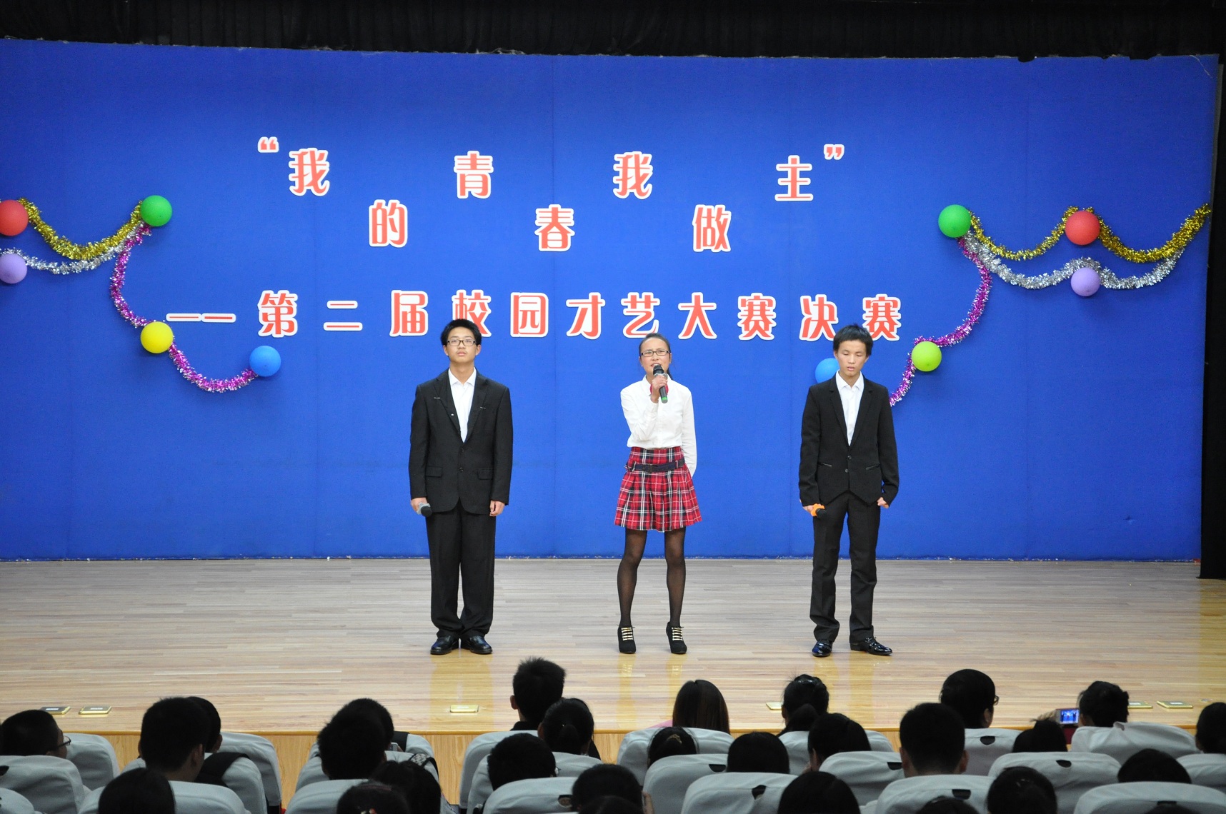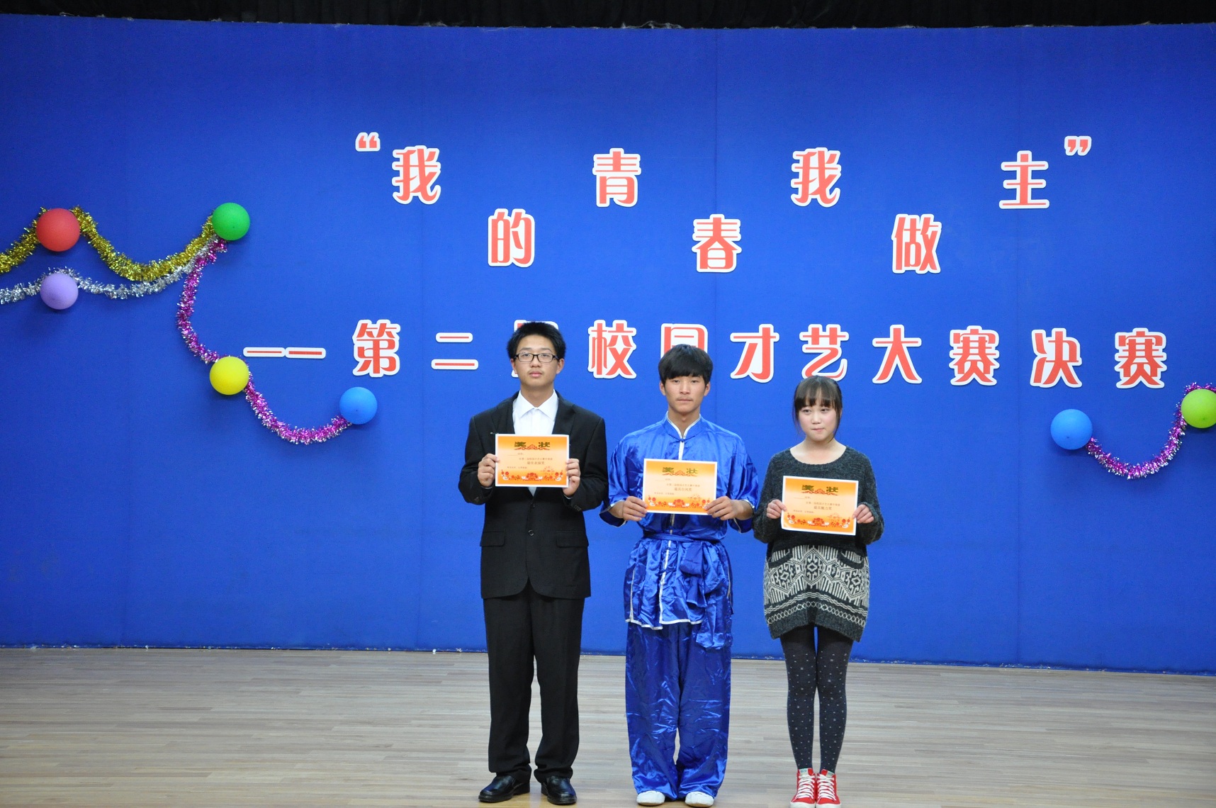 2013年11月21日下午3时20分“我的青春我做主”―― 第三届校园文化艺术节之才艺大赛决赛在我校B区报告厅隆重举行。此次大赛我校各科同学积极参与,共有9组参赛选手从海选的200多名同学中脱颖而出进入到决赛,并有30名大众评审参与投票,决出前三甲。