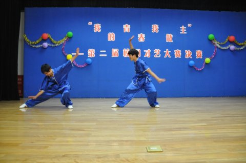 大赛共涉及:歌曲、单簧管演奏、吉他弹唱、诗朗诵、舞蹈、武术等众多才艺表演。在王天舟同学和李维同学的一首“光阴的故事”后才艺大赛正式拉开帷幕。同时也由孙雅婷、许丽芹精彩演唱《有形的翅膀》感染了每一个人,掀起了本届才艺大赛的高潮……其中由表演者喻洋、陈超同学表演的武术《男儿当自强》,那“静如处子,动若脱兔”的表演给在场的观众以及大众评审留下了深刻的印象。