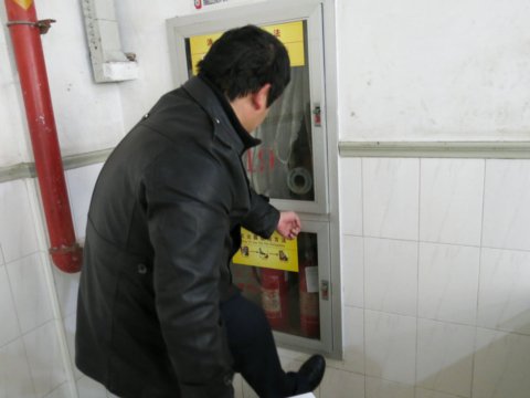 检查组首先来到财务室和图书馆这两个消防安全重点场所,在检查的同时,向科室管理人员进行了安全知识的宣传。接着,对南区食堂进行了重点检查,对操作间配备的灭火毯、室内消防器材的更换情况进行了详细了解,要求相关操作人员及时开展消防知识培训与演练。在几个实验实训场所,检查组重点检查了消防安全值班责任制度的落实情况,并对室内外部分消防器材的更换提出了要求。随后检查组一行来到教师宿舍,对不久前安装的门禁系统进行了检查,同时在各楼层张贴了“教工宿舍安全告示”,通过各个层面的宣传、教育,已基本杜绝了教工宿舍内使用大功率电器的情况,杜绝了安全隐患。