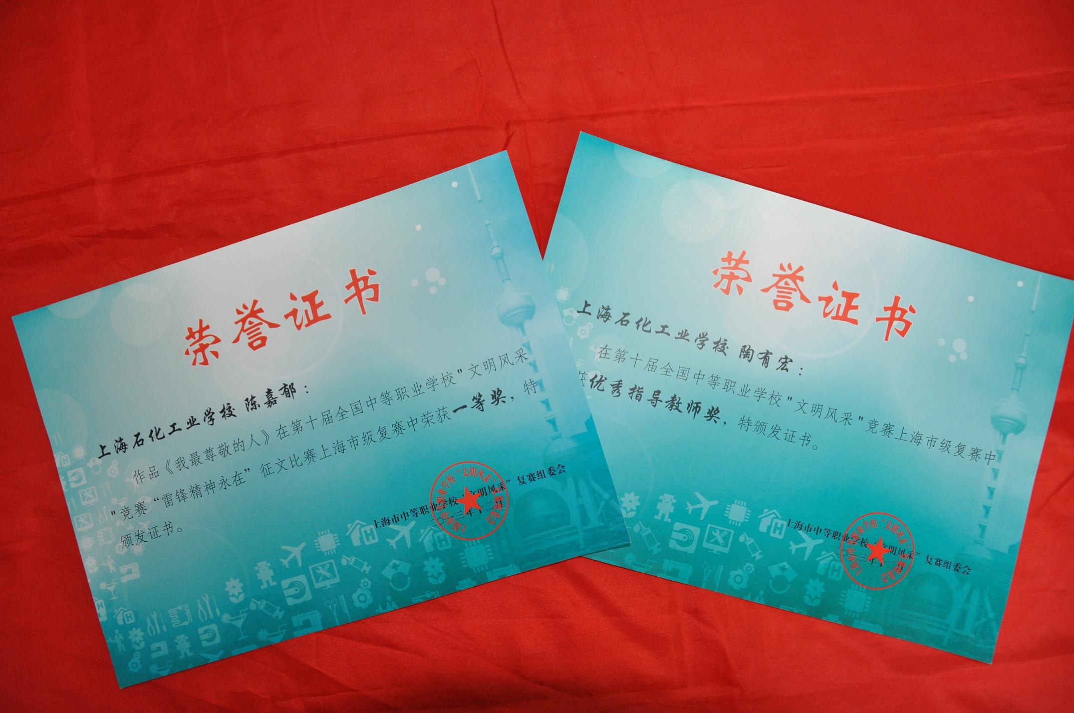 1.陶有宏老师获第十届全国中等职业学校“文明风采”竞赛上海市复赛中荣获优秀指导教师奖。