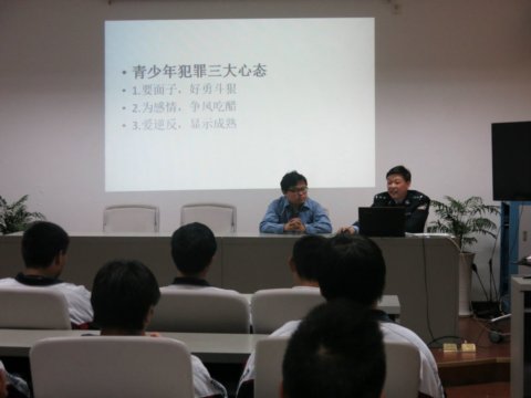 首先看守所的两位中队长用直观的PPT,结合少年犯的典型违法犯罪的案例,剖析了当今青少年犯罪的现状、特点及成因,为同学们讲解知法、守法的重要性,教育同学们珍惜时间,集中精力,好好学习,努力成为未来社会建设的栋梁之才。