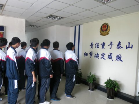 接着,看守所警官带领同学们参观了监舍,并向大家介绍了监管制度、犯人服刑生活等情况。在管理人员的带领下,学生代表参观了看守所的牢房、操场及其他场所,听取了看守所管理人员对一些未成年人犯罪情况的介绍。高墙、电网、监舍的场景、在押犯人的现身说法,让学生的心灵深处受到了强烈的震撼。