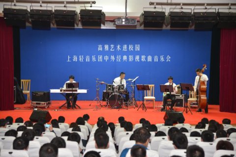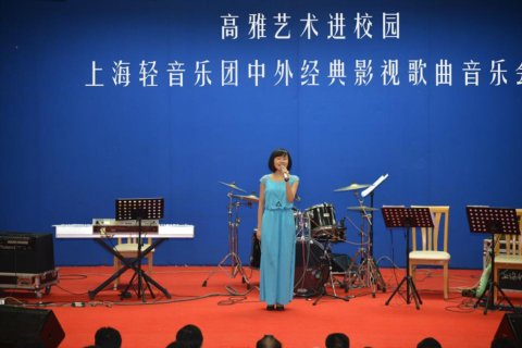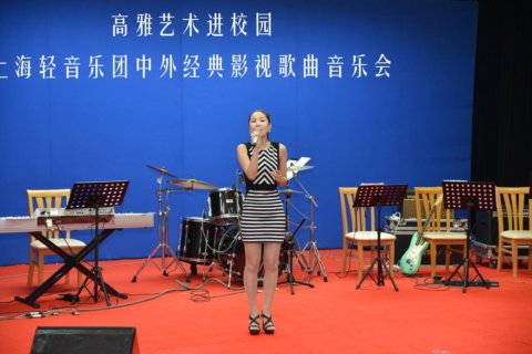 2014年5月20日下午,高雅艺术进校园――上海轻音乐团“中外经典影视歌曲”专场音乐会在我校报告厅拉开帷幕,来自上海轻音乐团的演奏家和演唱家们为师生们献上了一场精彩的音乐盛会。音乐会以《水边的阿迪丽娜》开场,清新的曲调瞬间便吸引住了听众们的耳朵,接下来又继续演奏了《小太阳》、《Misty》等多首曲目。优美的女声独唱引起了同学和老师的共鸣,大家不约而同的齐唱起来,现场气氛十分活跃。