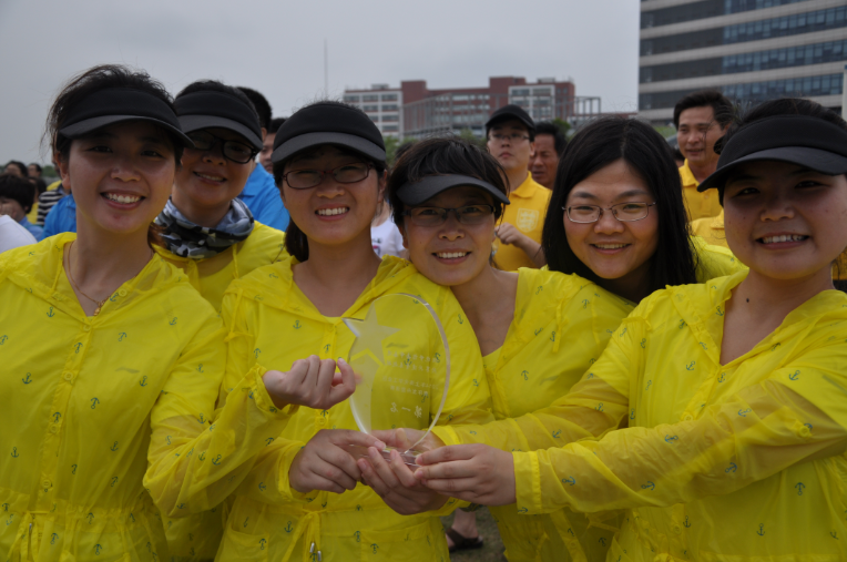 决赛激烈而又紧张,四支队伍能奋力拼杀到决赛都有着不俗的实力。飞溅的浪花仿佛观众们激动澎湃的内心,岸上各个单位的拉拉队都在为自己的参赛队摇旗呐喊,龙舟队员们则在鼓手的号令下埋下身体奋力拼搏,一时间华东理工代表队、化工区代表队和我校代表队难分上下,你追我赶,时而我领先时而他赶超,最后我校代表队以1分04秒28的成绩拔得头筹,队员们在比赛过程中表现出来的团队合作和坚持到底的精神令人敬佩。回想去年邀请赛,我校代表队以0.02秒之差获得亚军,今年也算是“一雪前耻”再次登上了冠军的位置。