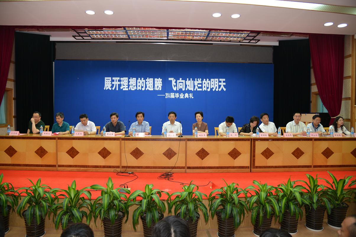 2014年6月19日上午9:30分,在我校B区报告厅隆重举行2014届学生毕业典礼。校长苏勇,校党委书记姚松芳,副校长林国新、高炬、黄汉军,工会主席李丽莲,教务处主任栾承伟,总务处主任吴永观,学生处主任迮育彪,化工科科长沈晨阳,机电科科长王根发,经贸科科长贾佩新,基础科科长邵宝勤等领导出席了本次大会。