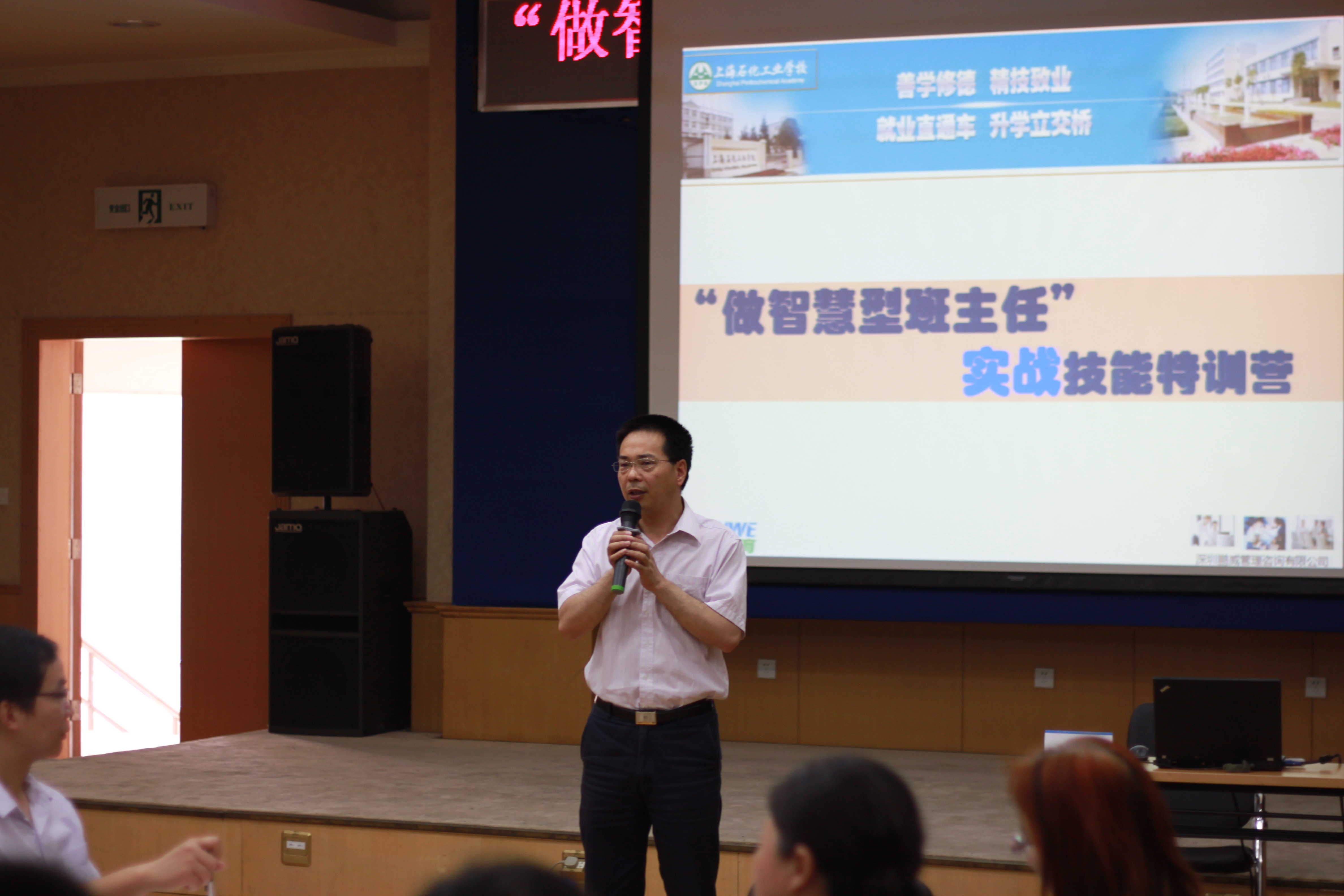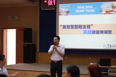 “做班主任难,做中职班主任更难,而学校工作离不开班主任,更需要优秀的班主任”,面对学校高位发展,班主任工作面临巨大挑战。2014年6月13、14日,特邀深圳鹏威管理咨询有限公司举办“做智慧型班主任”实战技能特训营”活动,高炬副校长做开班致辞,全体班主任及学生系统中层干部参加。