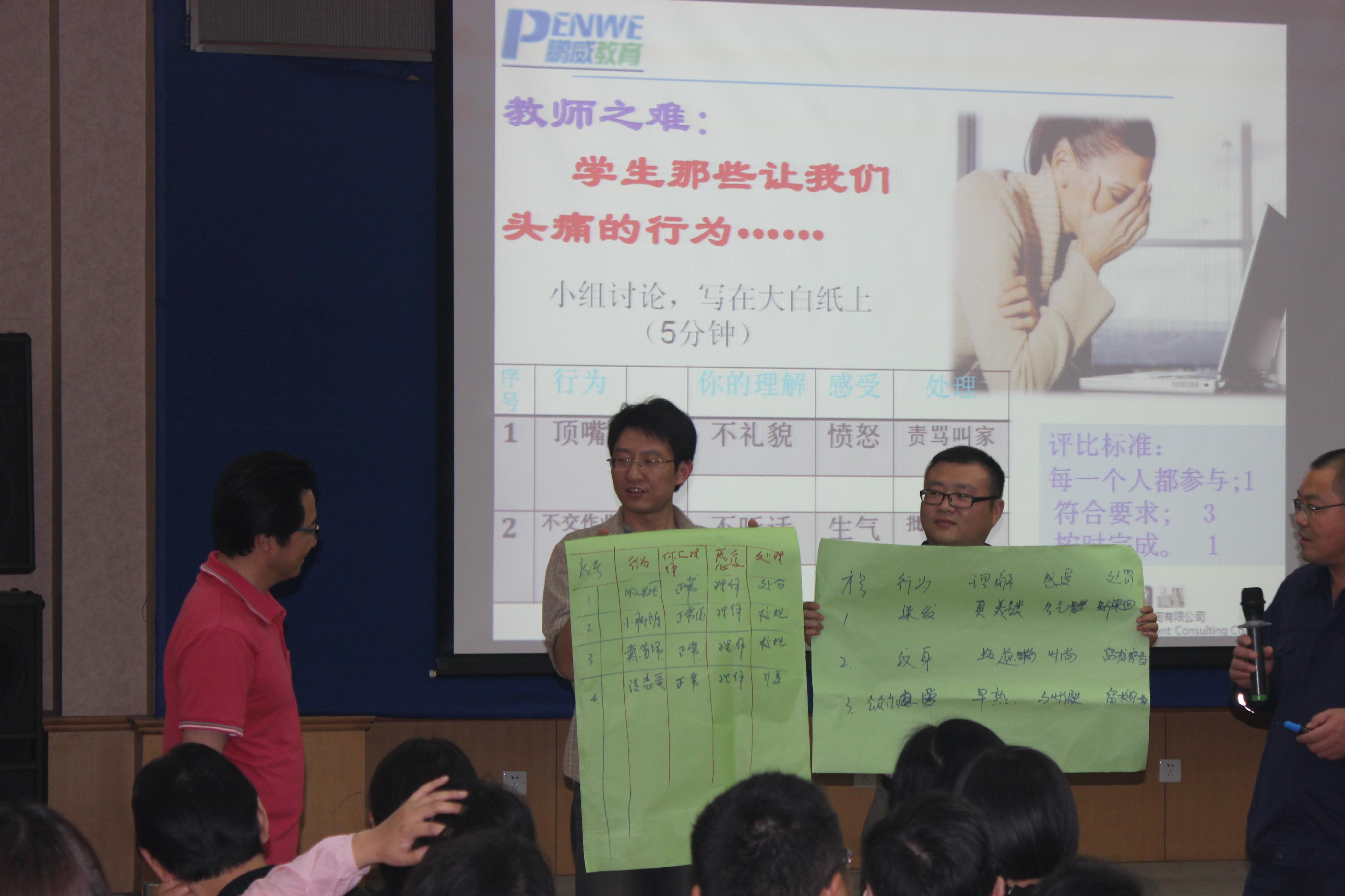 让我们老师了解中职学生心理发展特点及相应对策;学习如何破解学生行为背后的密码; 明白如何达成有效沟通;掌握如何将批评抵达学生心灵的技能;知道如何让表扬真正发挥作用;学会如何组织各类班级活动;提升对班主任这一角色的认识,增强班主任工作的价值感与成就感。采用互动体验启发式的教学方法,辅以影片、文字案例及小组互动讨论等教学手段。