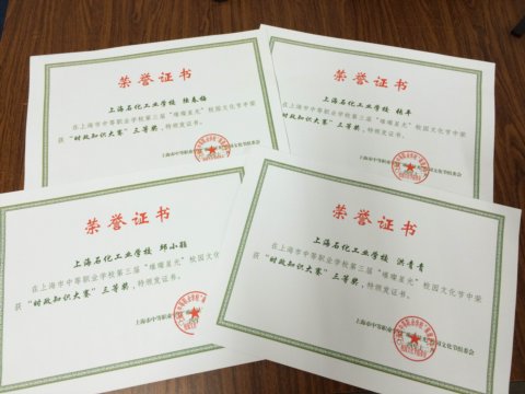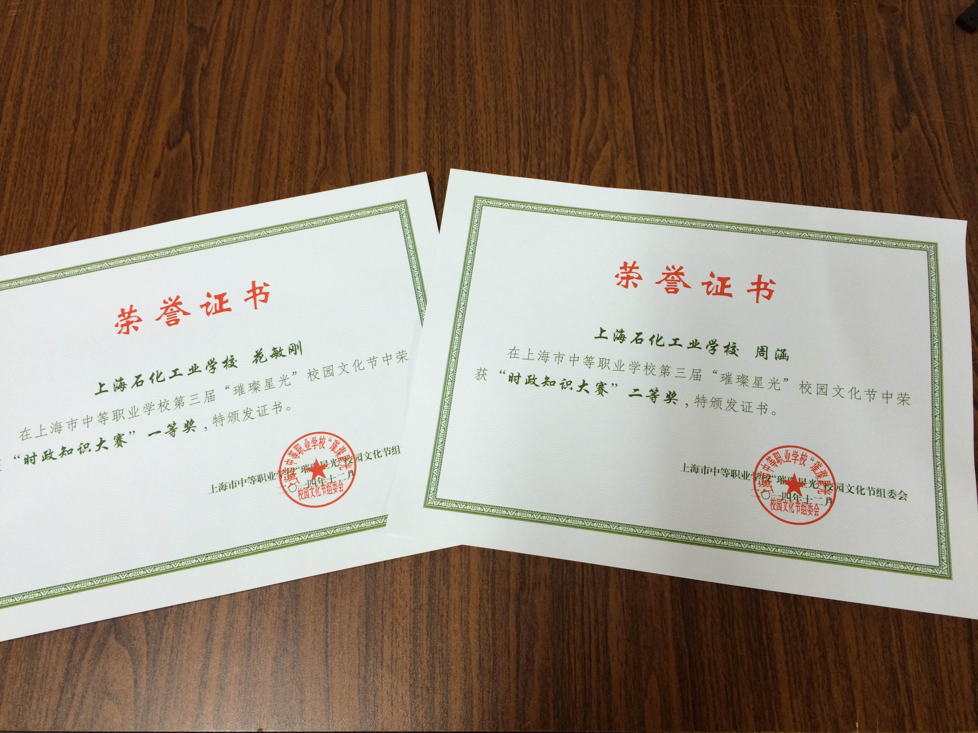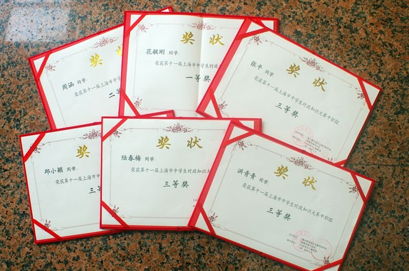 日前,上海市第十一届中学生时政大赛鸣金收锣,在学校领导的殷切关怀下,在指导教师团队的精心辅导下,我校时政协会代表队经过五个月的浴血奋战,取得骄人战绩,会长花敏刚如愿以偿获得第三个时政大赛个人一等奖,创造学校历史记录,周涵获得了个人二等奖,创造了机电科近几年最好成绩。还有张平、陆春梅、邱小颖、洪青青等四位同学获得三等奖。