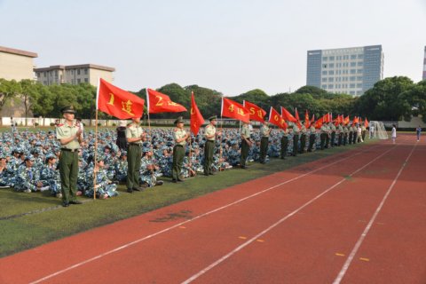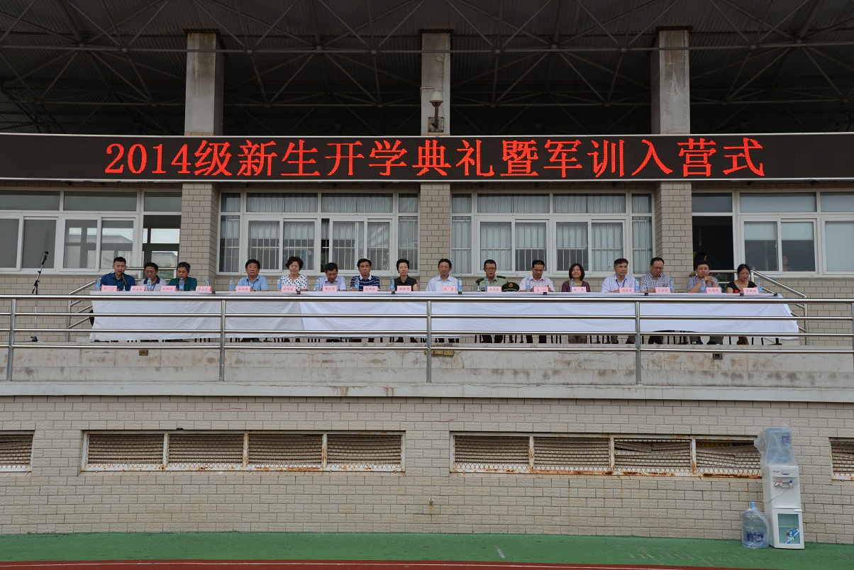 2014年9月9日下午3:00,我校在北区田径操场上隆重举行2014级新生军训入营仪式,校长苏勇,党委书记姚松芳,上海武警部队领导刘志刚,副校长林国新、高炬、黄汉军,工会主席李丽莲,校办主任周金章,教务处主任栾承伟,学生处主任迮育彪,化工科科长沈晨阳,机电科科长王根发,经贸科科长贾佩新,基础科科长邵宝勤出席仪式,入营仪式由学生处邵�老师主持。