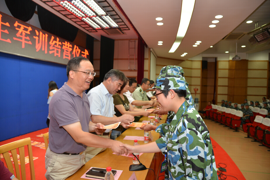 2014级800多名新生穿着统一的迷彩服服装,排着整齐的方队,精神饱满地进入结营仪式现场。升国旗仪式后,学生处主任迮育彪对军训进行总结性发言:首先,在武警官兵的大力支持下,经过全体教官严格规范的训练和全体参训师生的共同努力,为期五天的军训工作圆满结束;另外,告诫同学们能在今后的学习、生活和工作中,用军训所表现出来的精神和毅力去接受时代的挑战,迎接灿烂的明天!