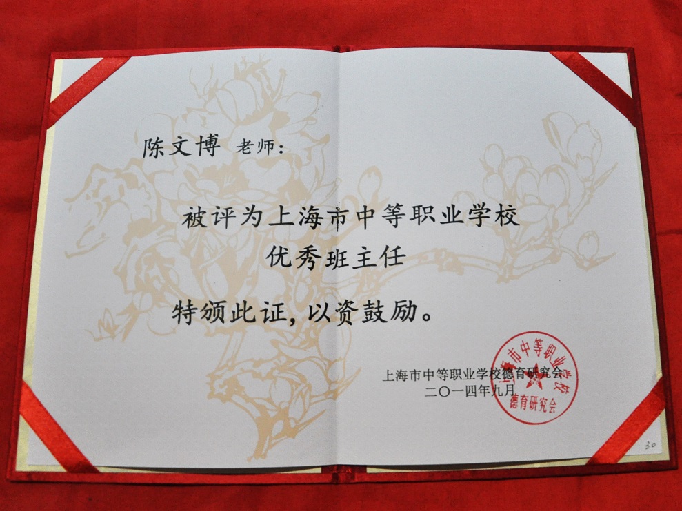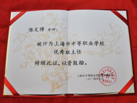 今年7月,我校陈文博老师被评为上海市中职系统优秀班主任,这是对他十多年来辛勤奉献的肯定与赞许。陈老师在教师的岗位上默默奉献,为社会培育了许多有用之才,让我们学习他的工作精神。