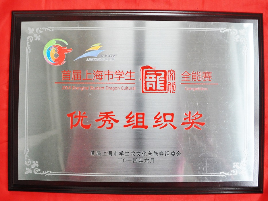 9月12日,上海市首届学生龙文化全能赛组委会在上海影城举办了表彰会,我校龙狮艺社继获得“道德风尚奖”之后又获得“优秀组织奖”。