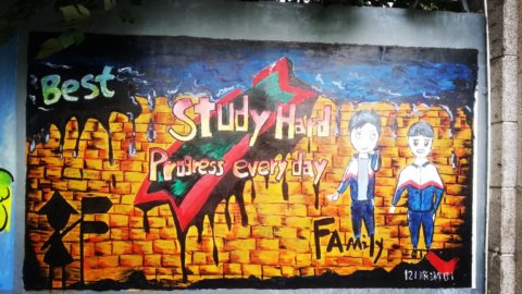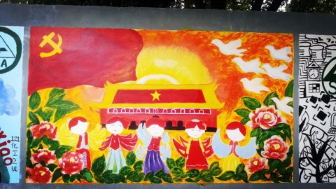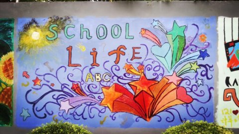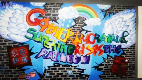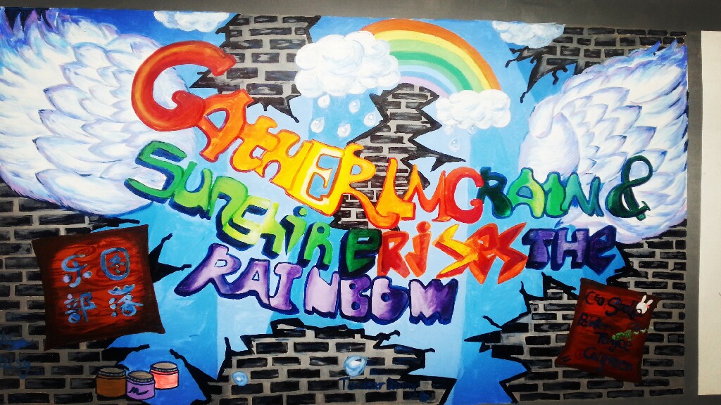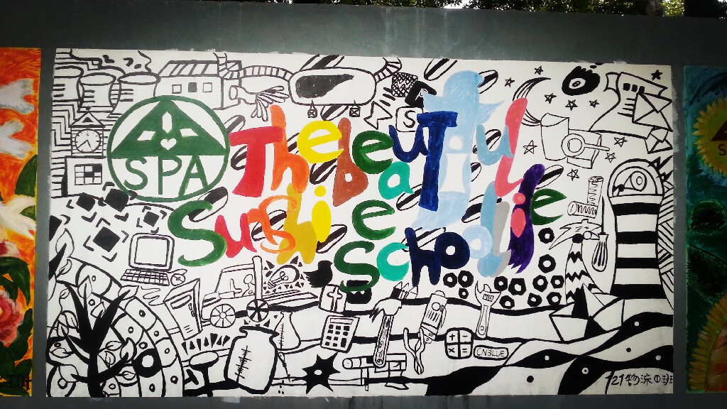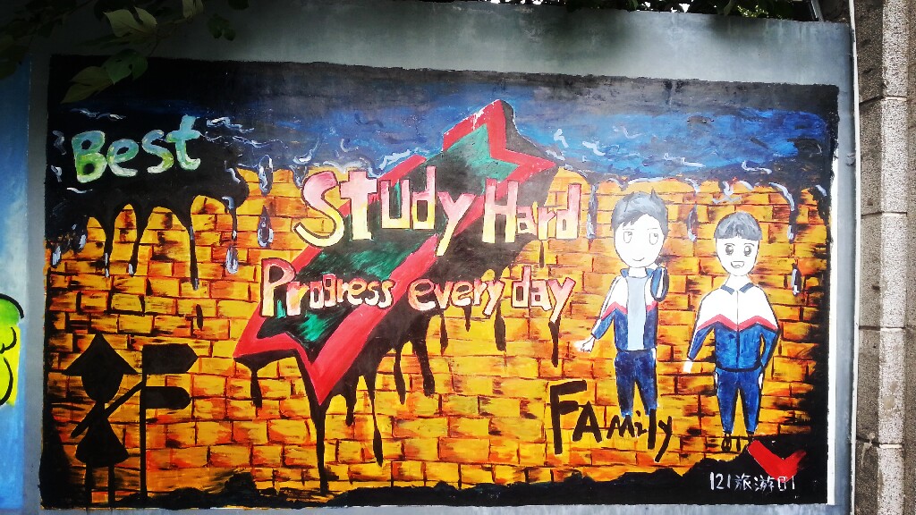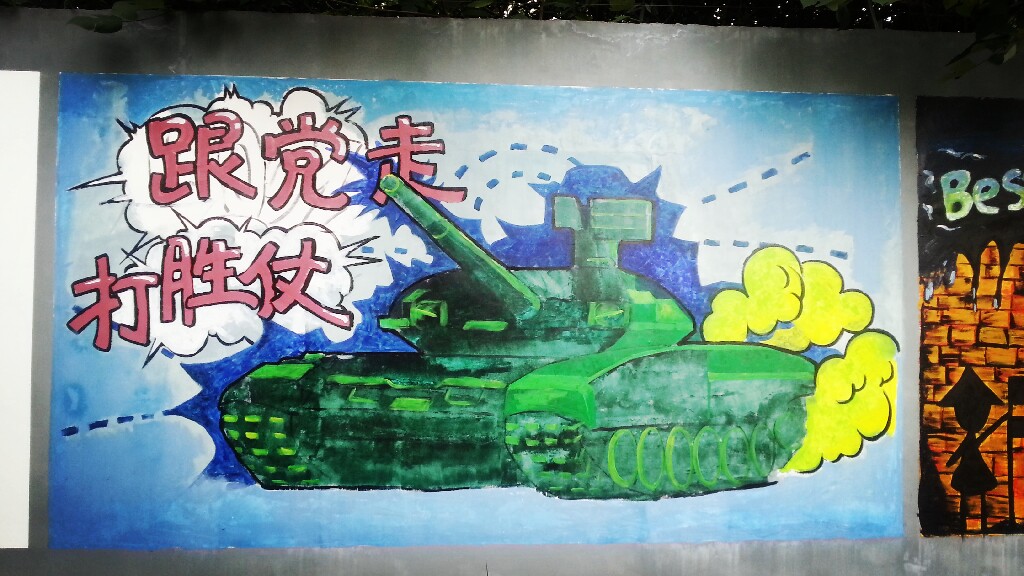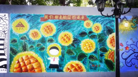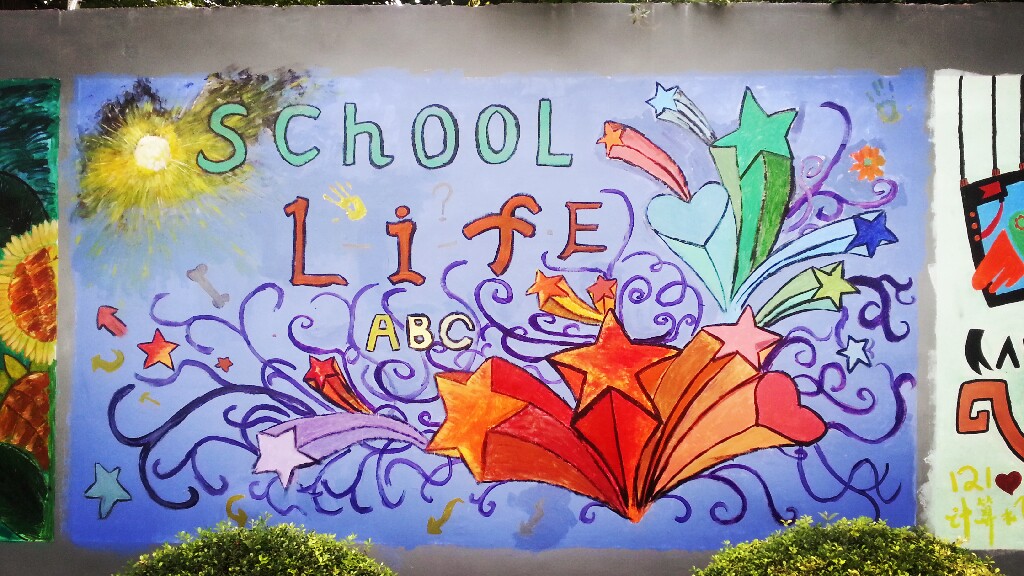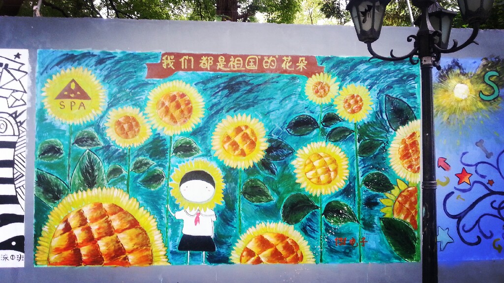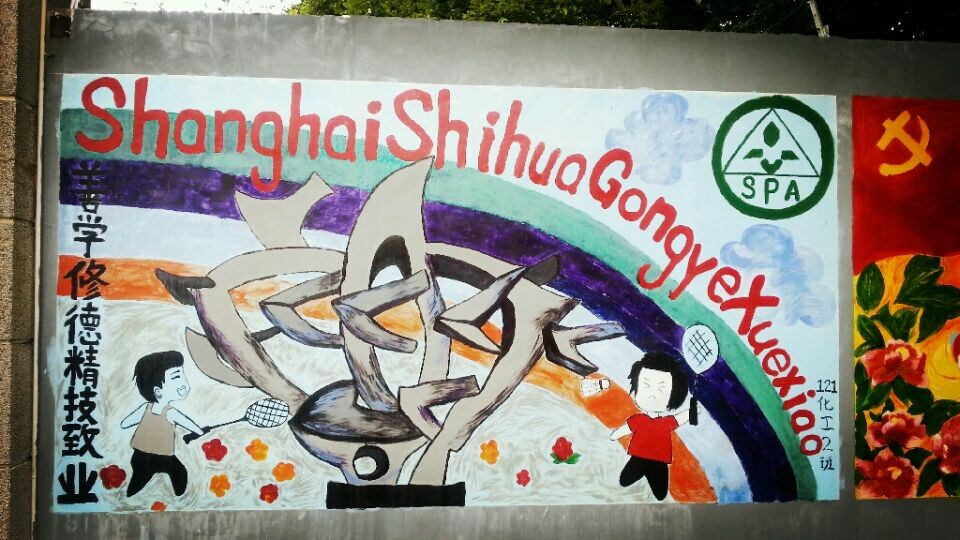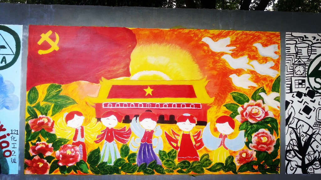 在第一批上墙的涂鸦作品中包括131电子班、121物流1班、121旅游班、121化工2班、121化工4班、121计算机班以及“乐图部落”绘画社、学生处、学生会的作品。你看,同学们纷纷在校园围墙上大展风采。用他们还不太熟练的画笔和颜料为围墙换上了新装。当然,这也是他们生活中积极向上、勇于表现自己的一个侧面。他们说,这片墙是他们自由发挥的天地,让他们感觉到了同龄人的浓郁的艺术气息。