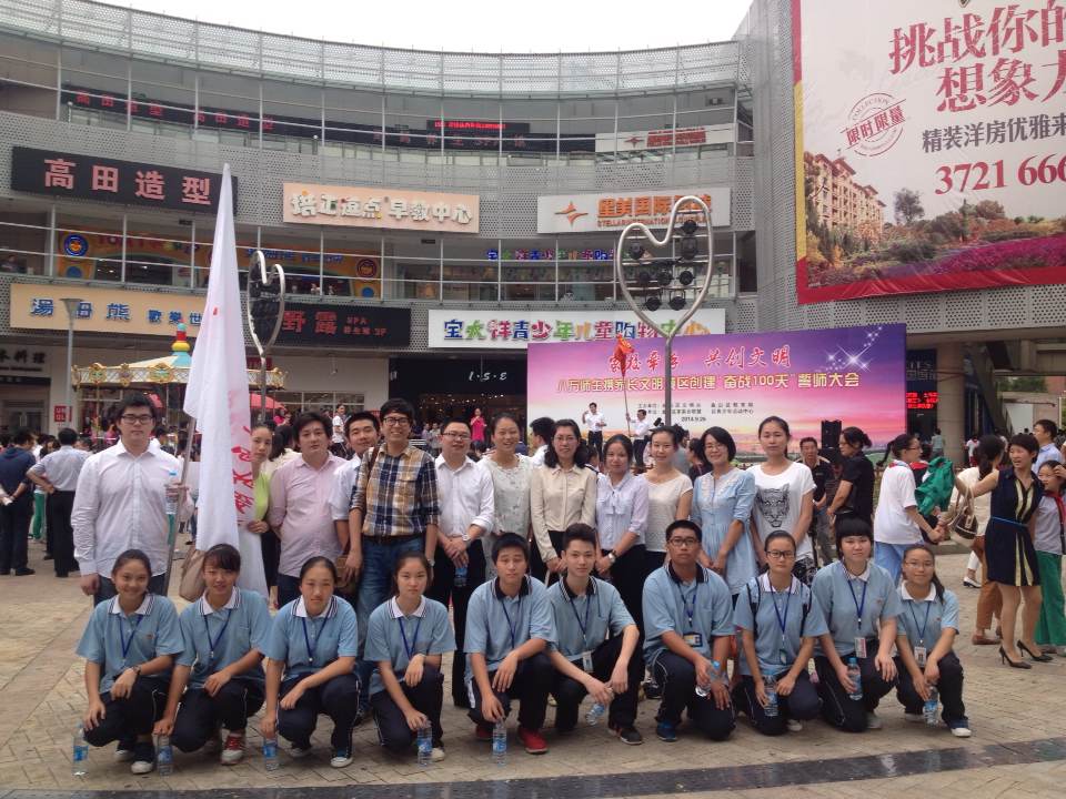 9月26日由金山区文明城区创建办、文明办、教育局、青少年活动中心四家单位联合组织的“八万师生携家长文明城区创建奋战100天誓师大会”在百联广场隆重举行,来自金山区石化地区的各中小学代表参加了此次活动,我校师生代表也应邀参加了此次活动。