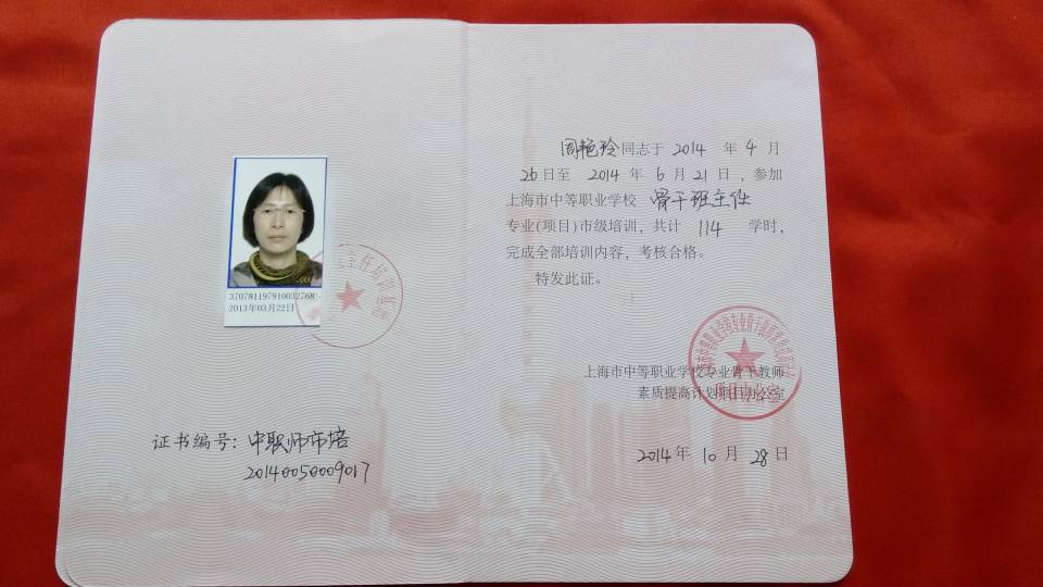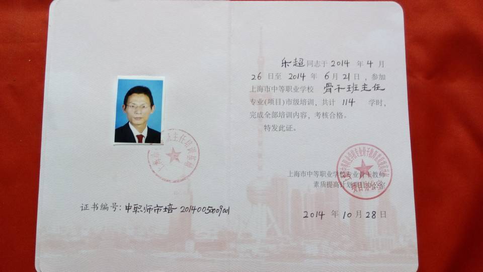为了提高进一步提高我校班主任的管理水平,提升班主任的教育艺术,我校德育室积极思考对策,努力为班主任搭建继续成长的平台。2014年4月26日,在德育室戴慧琴老师的精心组织下,我校3位班主任教师周艳玲、乐超、陶有宏参加了由上海市中职班主任培训基地在上海信息技术学校举办的2014年度上海市中职学校骨干班主任培训班,并于2014年10月30号顺利结业。