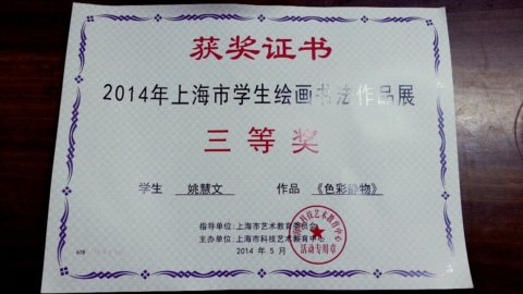 我校101高复(6)班学生姚慧文色彩作品《桌边的玫瑰花》在2014年5月上海市学生绘画书法作品展中荣获三等奖。本次比赛是由上海市科技艺术教育中心主办,上海市长宁区少年宫承办。