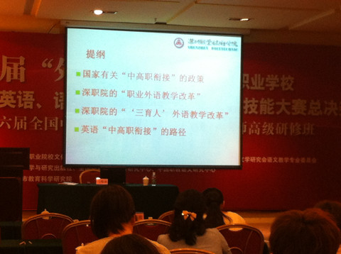 同时,根据大赛会议议程安排,我校两位参会教师参加了中职英语教师高级研修班培训,聆听了《信息化环境下中职英语教学解决方案的介绍》、《现代职业教育理念下的中职英语教师职业化转型》等数个专家专题讲座。最为值得一提的是,在分论坛研讨会上,我校两名英语教师参与了“微课在中职英语教学中的应用”这一话题的讨论,与来自各地的教师畅谈“微课”在各自学校的应用与推广,并且提出了各自的困惑于疑问,与会专家认真回答了教师的提问,让教师对“微课”这一较为新鲜的事物有了更深层次的认识。