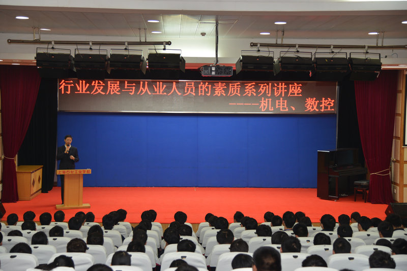 秋天是金色的,是收获的季节,而16届的学生却站在就业、就读、择业的人生转折点上,为了更好让我们的学生走出择业误区,正确寻找择业方向, 2014年11月12日星期三下午在B区报告厅,邀请到上海中船三井造船柴油机有限公司人力资源部培训主管沈方明为我校学生做了一场就业指导的报告会。