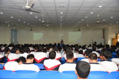 延锋伟世通人力资源部经理蒋凯先生介绍自己也是一名中专毕业生,经过多年的职业生涯,给学生们说了一些自己的人生感悟,希望学生们珍惜学习机会,多接触社会、多积累社会经验。