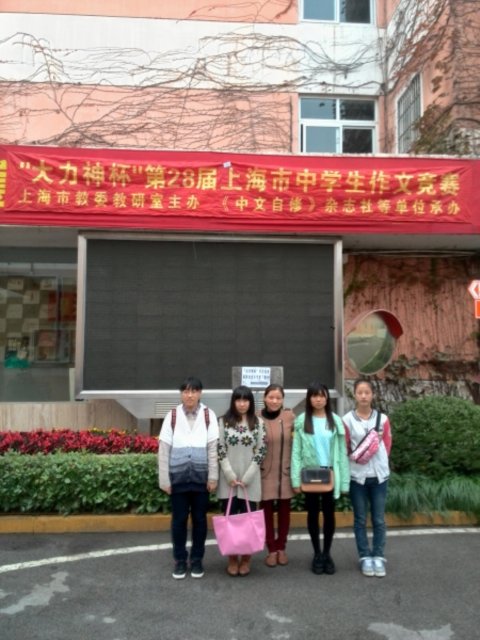 2014年11月16 日下午,“大力神杯”第28届上海市中学生作文竞赛在上海市商业学校如期举行,来自全市各中职校的近百名学生聚此一战。我校4名学生在语文组于燕娜老师的带领下赶赴现场参加了比赛。