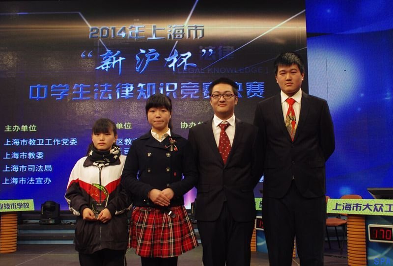 在金山区司法局、教育局、法宣办有关领导的热情关怀下,我校时政协会神雕代表队在会长花敏刚的带领下,于12月6日上午在上海教育电视台团体中职组总决赛中,攻坚克难,以超人的智慧和无比的勇气,零缺陷完成了比赛的必答题、抢答题、风险题三个环节的答题任务,与主要对手打成平手,遗憾的是,在加时赛的抢答题环节中,被对手超越,屈居亚军,夺得第二名,荣获二等奖。