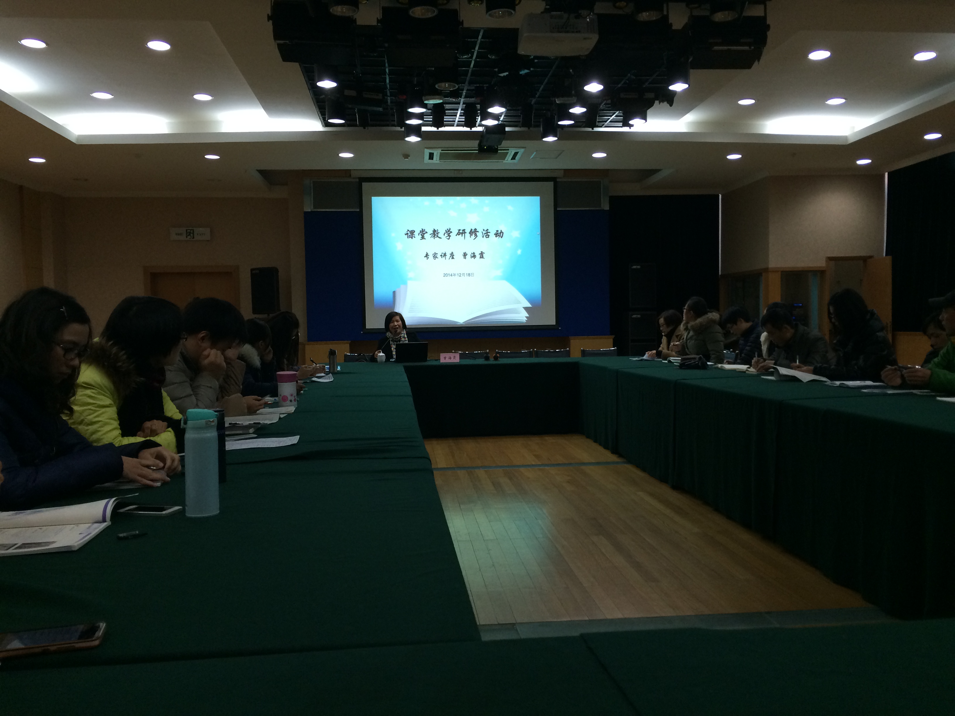 昨日,我校B区多功能厅内座无虚席,课堂教学研修班第三讲于上午在此开讲。本次主讲的嘉宾是上海商贸旅游学校前教学副校长、上海市教委教研室研究员曾海霞。学员们听说这次是曾海霞老师来讲,早早就来等候,有的学员说:“我之前听过曾老师的讲座,非常好”,还有学员说“曾老师是我的偶像”。有些班外教师也慕名前来。