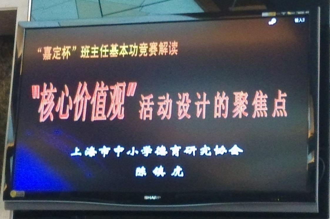 会上,上海市中小学德育研究协会的陈镇虎专家就“‘核心价值观’活动设计的聚焦点”,解读了班主任基本竞赛的意义和内容。专家首先对爱国、敬业、诚信、友善四个关键词解读了背后深层的含义。之后就竞赛的形式进行了介绍,明确指出此次的竞赛笔试与面试同等重要,其中面试是对教师综合素养的全面考察,参赛教师要重点关注。