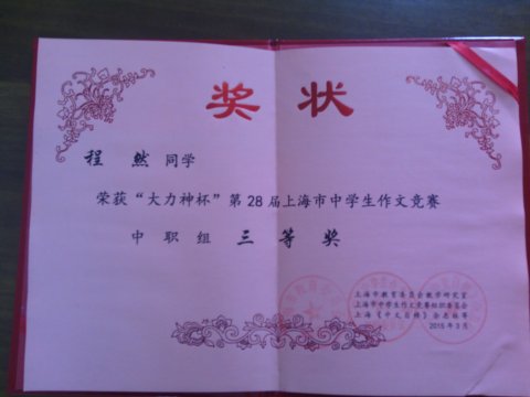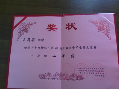 2014年12月,在于燕娜老师的带领下,四名同学赴市区参加了中职组的现场作文竞赛。这样的形式,排除了教师指导的外在因素,完全依靠学生自身的能力和素质。在如此激烈的竞争中,111高复04班的王莉莉、111高复03班的程然分别获得二、三等奖。