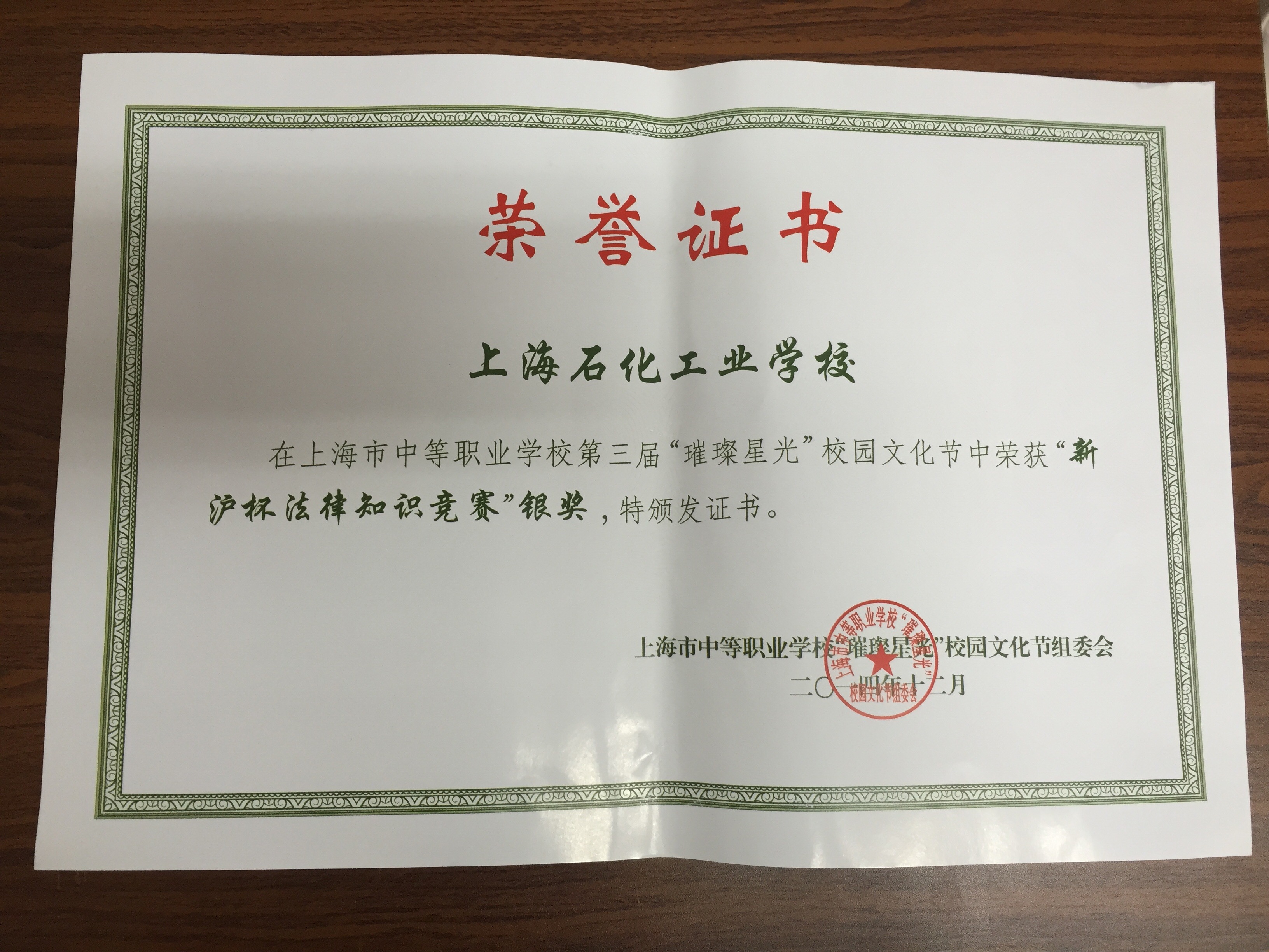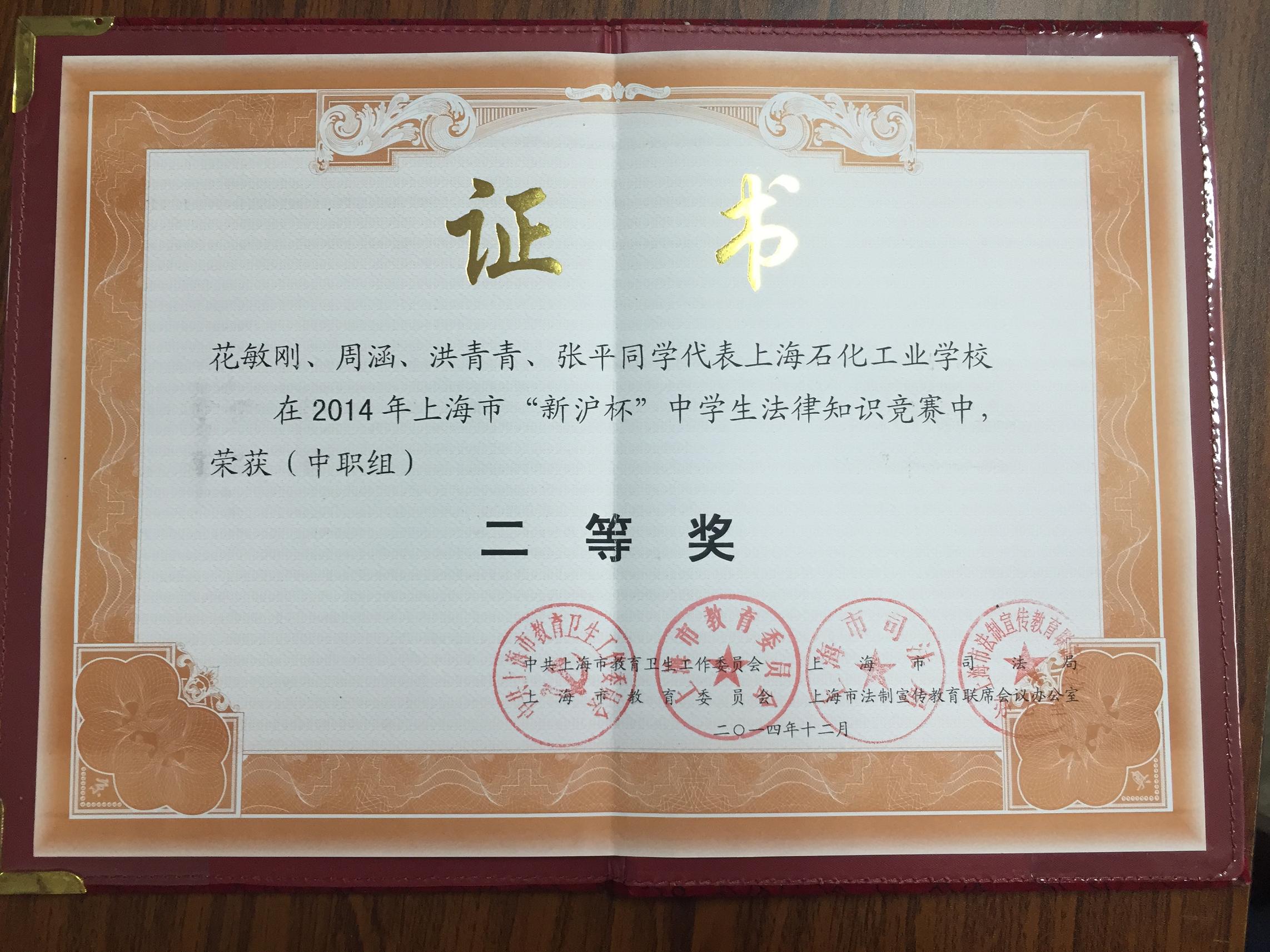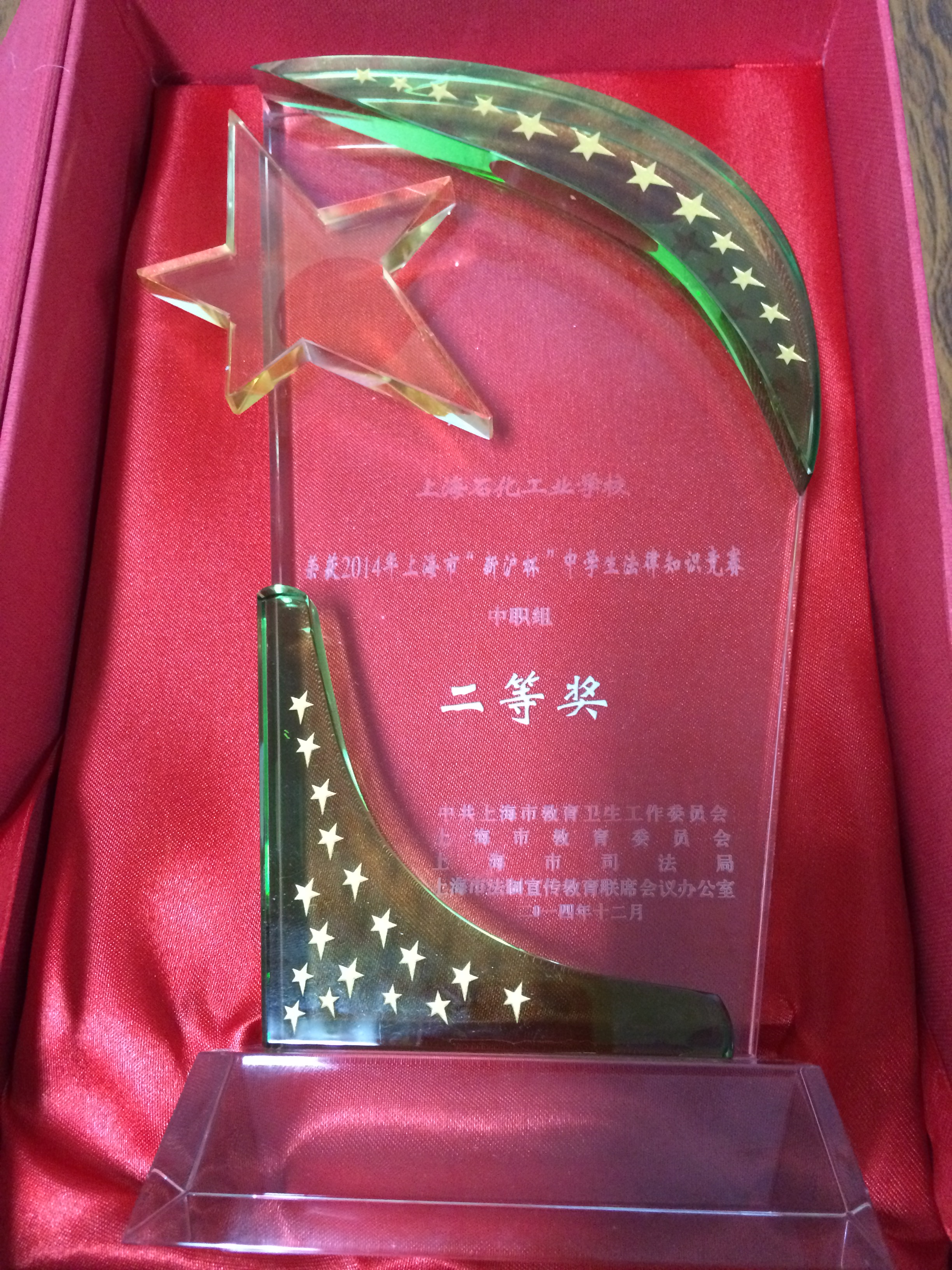 近日,上海市教卫工作党委、市教委、市司法局和市法宣办联合举行2014年上海市“新沪杯”中学生法律知识竞赛颁奖,历时四月的竞赛活动圆满结束,在学校领导的大力支持下,我校获团体二等奖,个人二、三等奖。