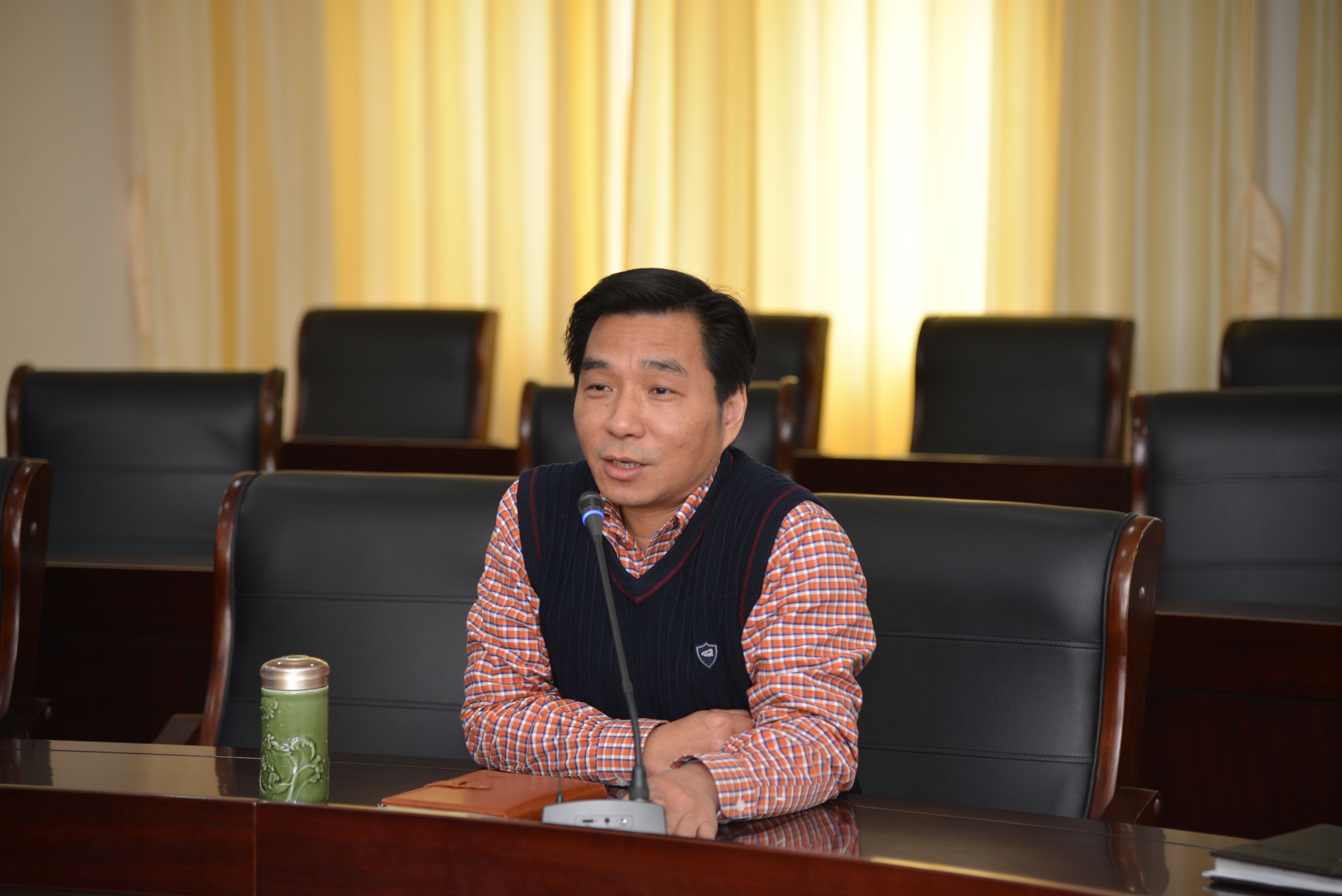 我校教研室主任施新生老师就我校在教科研方面的实践做了汇报。特别介绍了我校开展的课堂教学研修班活动,他指出我校的课堂教学研究班活动坚持从内部需求出发,立足我校的实际情况,以课堂为教学改革实践的主战场,关注教学设计和教学应对。并与参会人员就研修班的具体细节进行了细致交流。