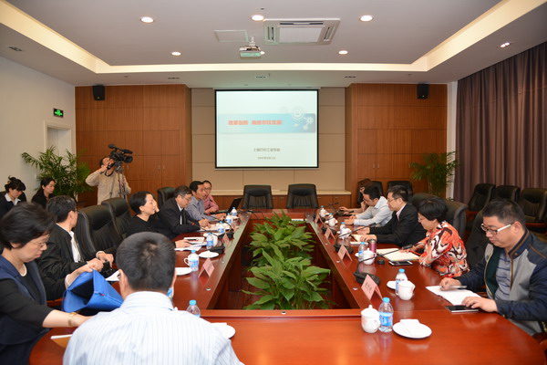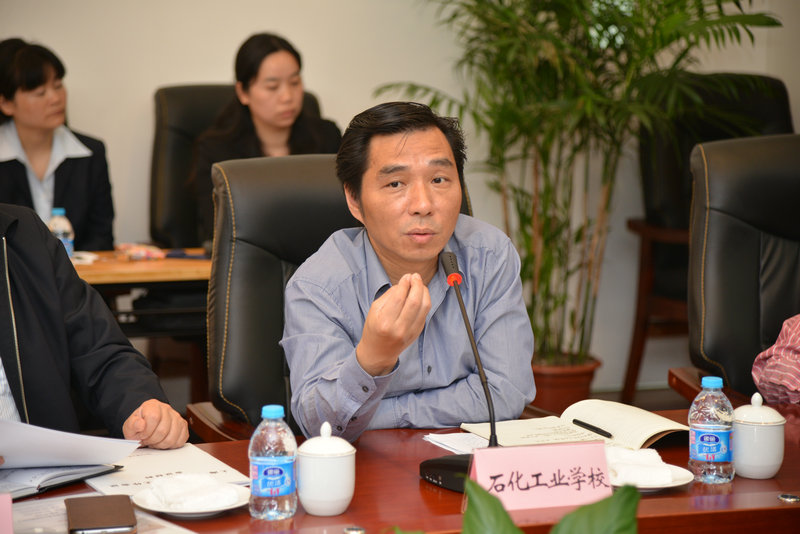 现场考察结束后,“市教委领导调研金山区职教发展工作汇报会”在实训中心一楼会议室举行。上海石化工业学校副校长林国新、上海食品科技学校校长金四云分别就各自学校的发展做了工作汇报。在石化工业学校的发展上,陆副主任指出,学校与化工巨头拜耳的合作非常有代表性,特别是拜耳出资在学校建设一条高仿真的流水线来开展人才培养,极为难得,堪称学校一大亮点。教学上,学校与国内外大型企业深入合作,不断改进课程与教材,极大程度地适应企业发展,打造出切实有效的精品课程;毕业环节上,学生可直接进入一流的500强企业,无论是薪水还是岗位都有一个很高的起点,相当不易,值得大力宣扬。他指出,在职业教育越来越受到社会重视和百姓认可的当下,学校要抓住机遇,在扩大现有优势的同时,深度发展国内外校企合作,探索开设国际通行的职业资格证书,抢占发展制高点,深深依托金山独特的区位优势,把金山职教打造成上海职业教育王冠上的一颗闪闪明珠。