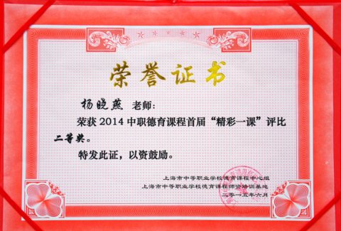 我校党政领导班子高度重视德育课教学工作,学校选派德育室杨晓燕老师和田浩老师参加了上海市中职首届德育课“精彩一课”大赛,从2014年7月起,一路过关斩将,奋力拼搏,最终分别获得《经济政治与社会》、《哲学与人生》两个组别的亚军,显示了良好扎实的教学功底。德育室领导戴惠琴老师受学校委托上台领取组委会颁发的优秀组织奖,全市只有七所学校获此殊荣。