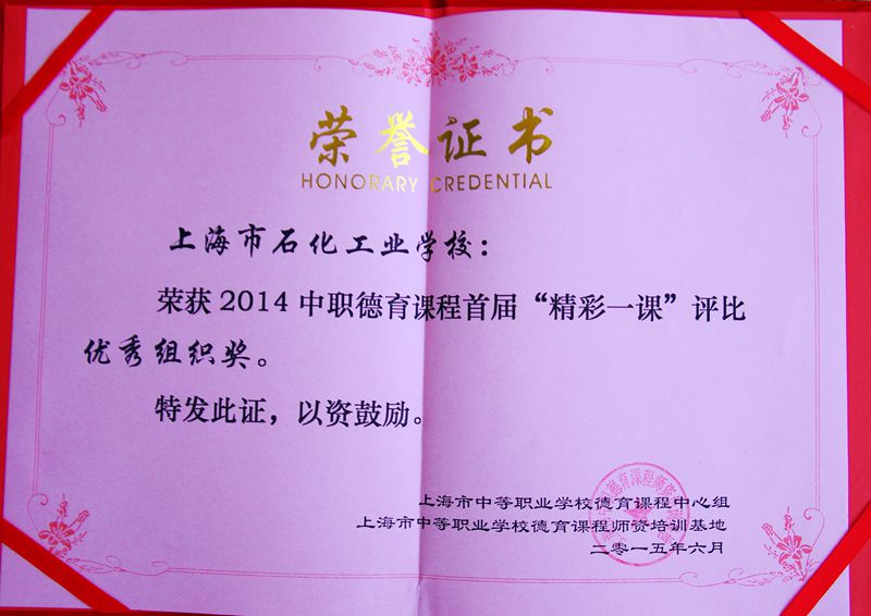 2015年6月3日(周三)下午13:00在上海市商贸旅游学校一楼报告厅举行了上海市中职德育课程首届“精彩一课”颁奖活动。上海市教委职教处、德育处、装备处、教研室等领导出席了此次颁奖活动,我校获得优秀组织奖。