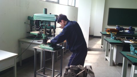 10日下午是镶配件制作,竞赛从14:40开始――17:10结束,历时150分钟,赛场中虽然电风扇在高速旋转,带来些许凉意,但经过一系列的划线、锯割、锉削、钻孔等高强度操作,选手们还是汗流浃背,但他们仍在按照工艺方案和操作要领,认真专注的进行镶配件制作,虽然工件难度较大、时间又紧,但是我们还是按时完成了镶配件制作。