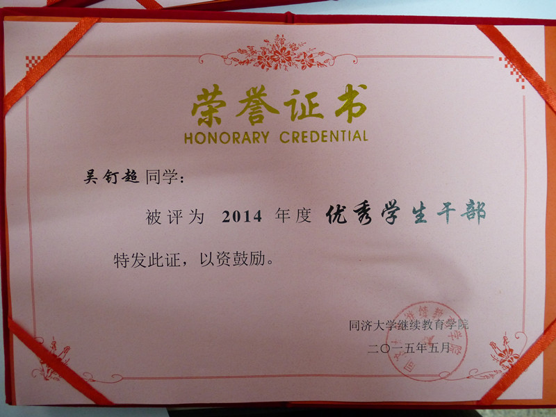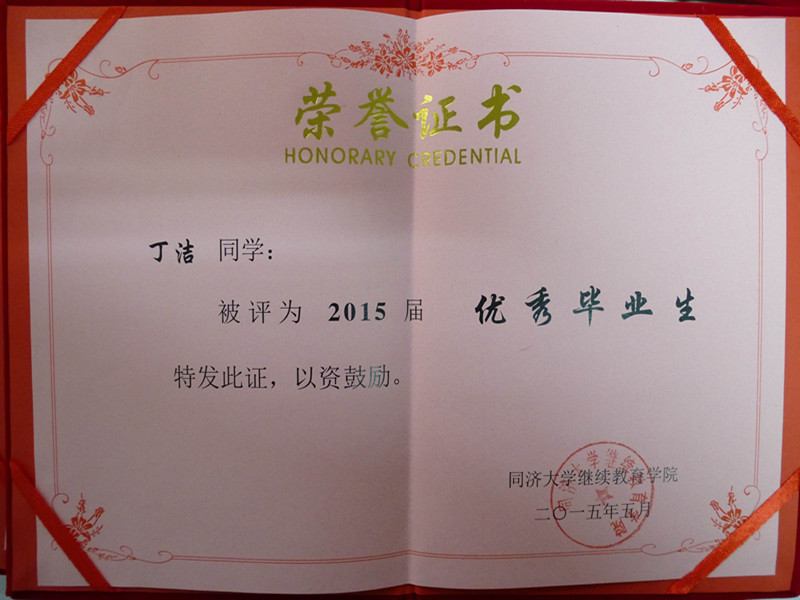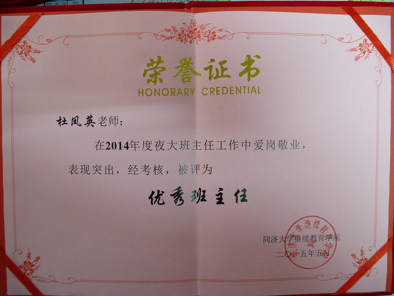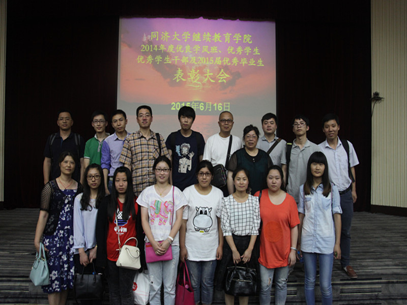 培训中心同济大学继续教育学院2014年度优秀学生刘琳蕾等22人、优秀学生干部吴钉超等13人、2015届优秀毕业生丁洁等2人受到表彰。优秀班主任杜凤英同时受到表彰并上台领奖。