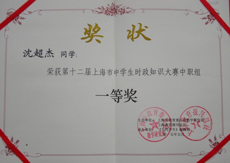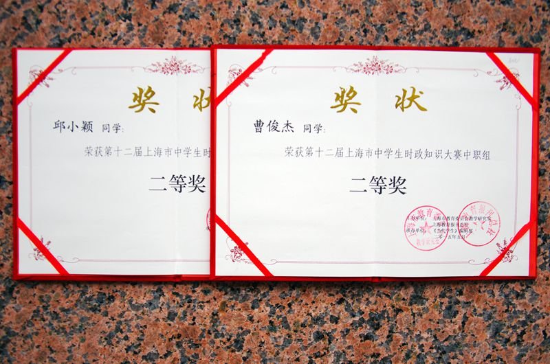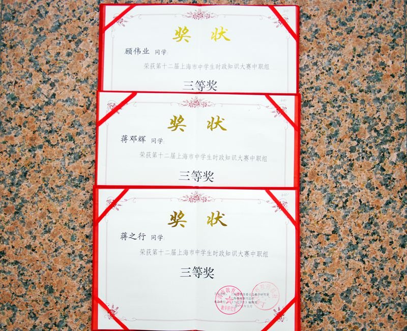 日前,捷报传来,我校时政协会在上海市第十二届中学生时政大赛中取得佳绩。上海市中学生时政知识大赛,由上海市教委教研室与上海教育报刊总社共同主办,《当代学生》杂志社、上海市学生德育发展中心、上海市中等职业学校研究会承办,是推动中学生素质教育的一项品牌活动。 今年的大赛以“自觉践行社会主义核心价值观”为主题,引导中学生深入贯彻习近平总书记系列讲话精神,自觉将社会主义核心价值观内化为自身的精神追求。
