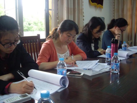 检查组首先听取了教务长卫智敏对培训中心2014年度政府补贴资金使用情况的简要汇报,然后根据评审标准和要求,分条线对自查自评报告中的数据及内容逐项逐条确认并查阅佐证材料。