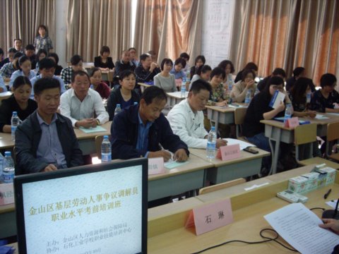 10月20日,风和日丽,丹桂飘香。上午8时30分过后,来自金山区各街镇(工业区)的74名基层劳动人事争议调解员鱼贯进入培训中心大教室,顿时大教室里座无虚席。9时许,2015年金山区基层劳动人事争议调解员职业水平考前培训正式开班。