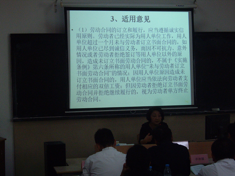 接着第一堂“劳动合同法”开课,学员们全神贯注认真听讲,教室里鸦雀无声,教学秩序良好。根据时间和课程安排,这次培训将进行三天,最后一天增加60人旁听。特邀市相关部门专业教师负责讲授“劳动合同法、调解仲裁法、调解实务、案例分析”课程,区相关部门专业人士负责讲授“有关法律实务、劳动报酬计算实务”课程。74名学员享受区级政府补贴培训,将通过职业水平考试取得区人社局颁发的“劳动人事争议调解员”上岗证书。